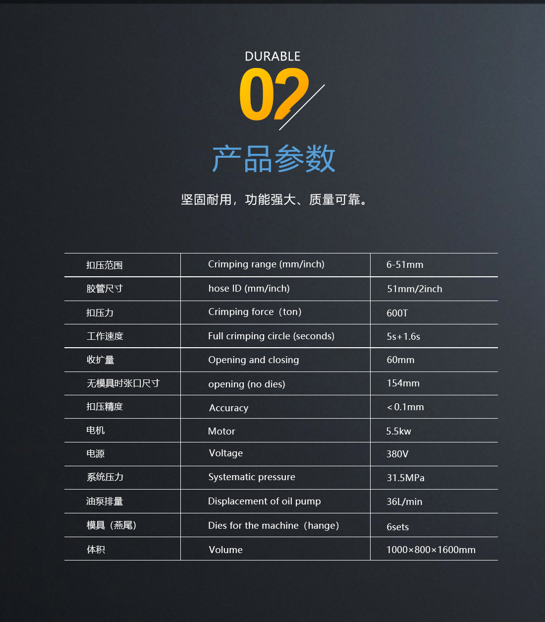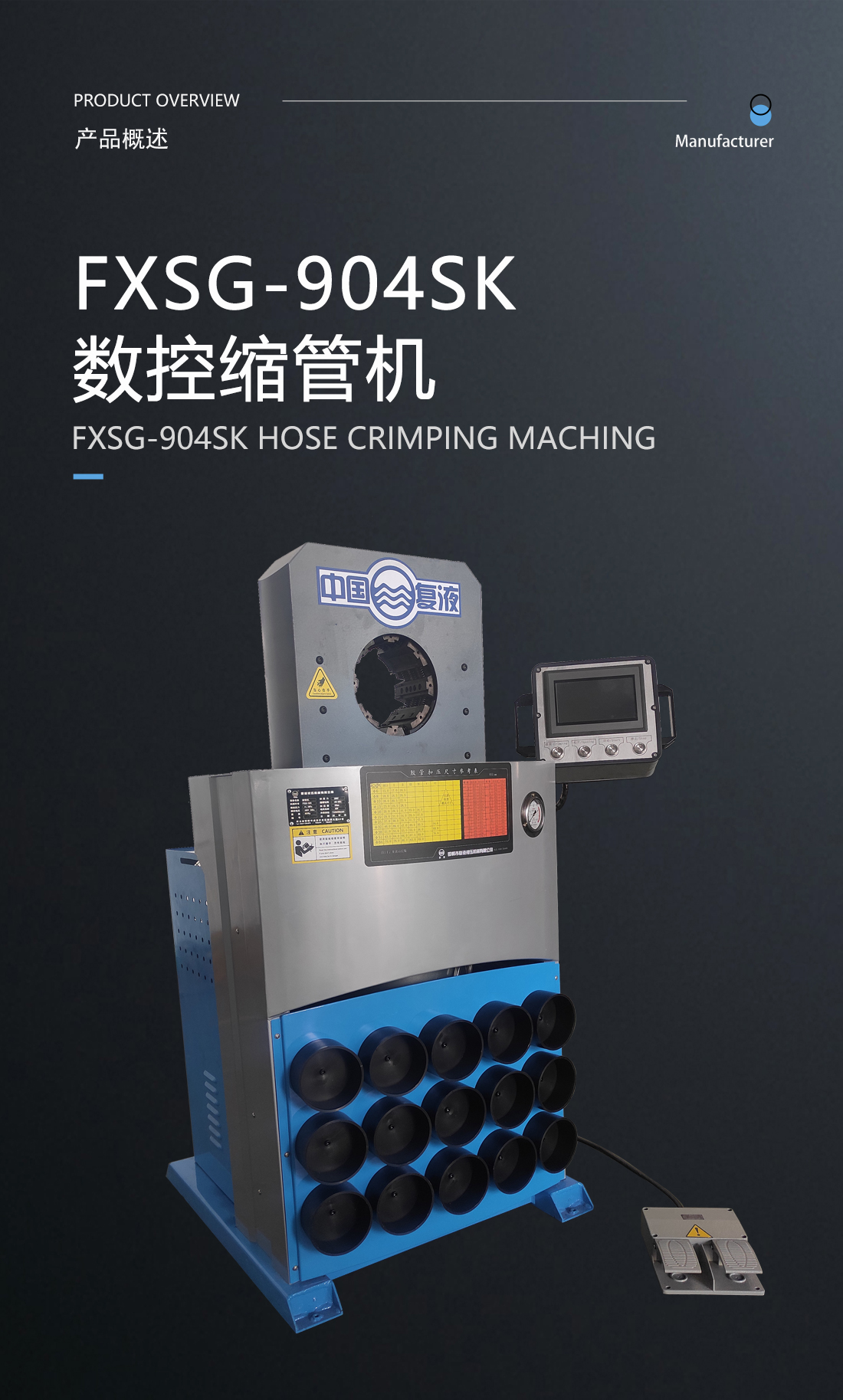 Our company has successfully developed an ultra-thin series of pipe shrinking machines, with a repeated compression accuracy of 0.1mm. The ultra-thin structural form overcomes the inherent shortcomings of traditional circular buckle press, and can easily buckle high-pressure oil pipe assemblies and special-shaped flexible shaft hoses with complex shapes. This machine has a smaller exterior size and adopts a user-friendly design, making it more convenient for users to operate. The control system adopts a PLC+display screen mode, and the displacement sensor can collect signals with an accuracy of 0.01 millimeters. The system can adopt three modes: manual, semi-automatic, and fully automatic. Users can easily choose according to the actual processing conditions, greatly improving processing efficiency. If you encounter any inconvenience during your use, please contact us in a timely manner. We will make unremitting efforts to improve the quality of your products and work efficiency.